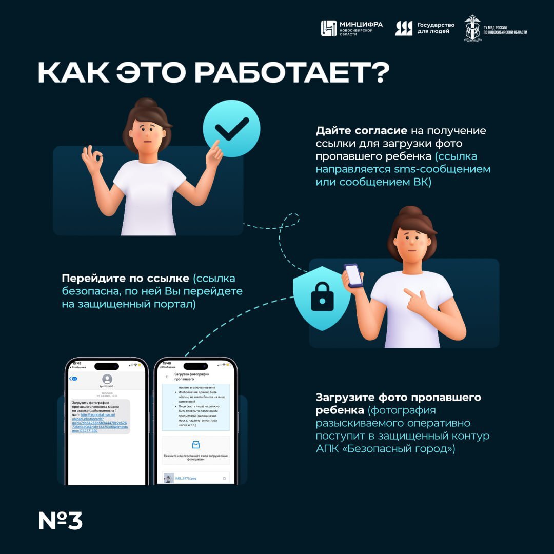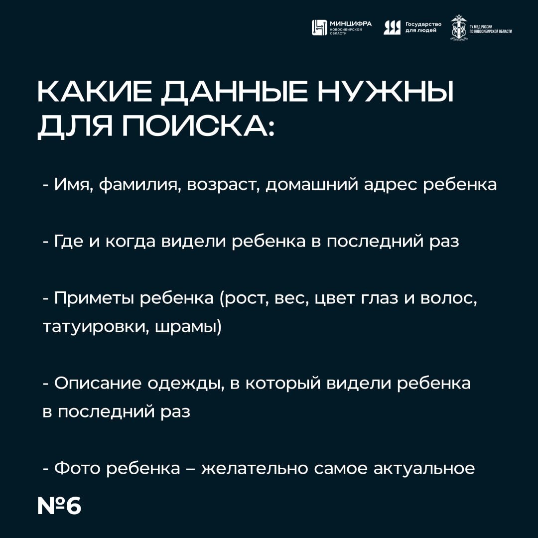 Что делать, если пропал ребенок — в наших карточках, или на сайте дети.112нсо.рф